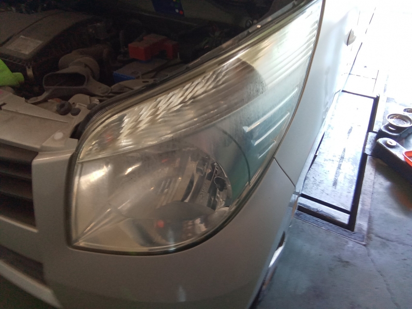 先程も、スズキ パレットのヘッドライトを綺麗にする作業を