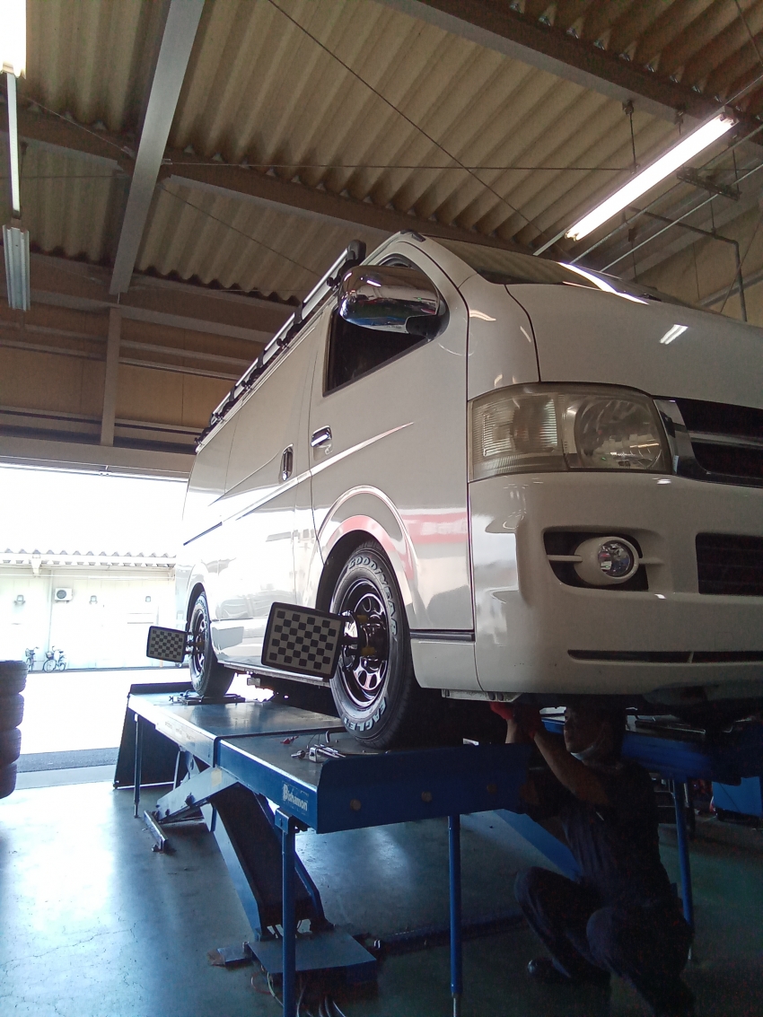 ハイエースタイヤ交換とアライメント調整させて頂きました!!!