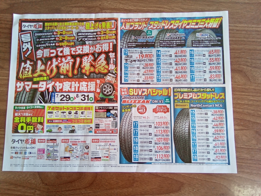 こんにちはタイヤ市場足利店です。