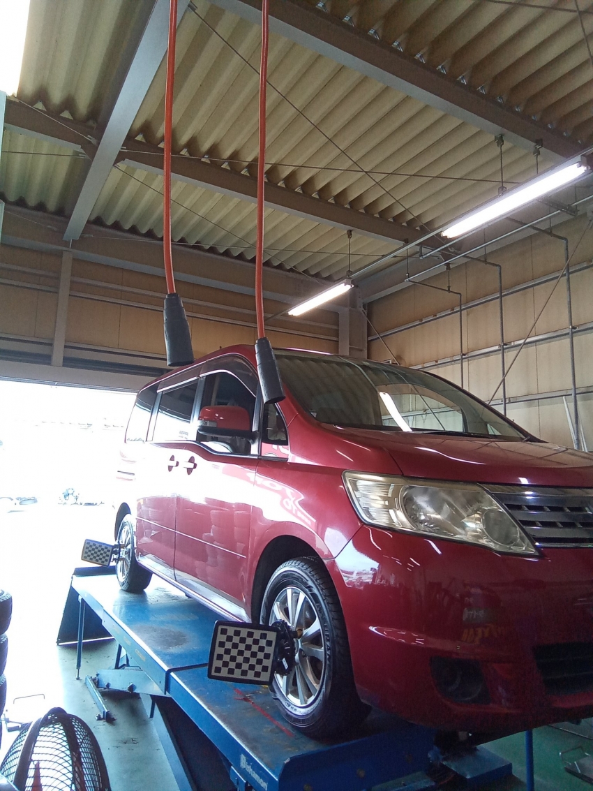 本日、日産 セレナのアライメント調整を施工致しました!