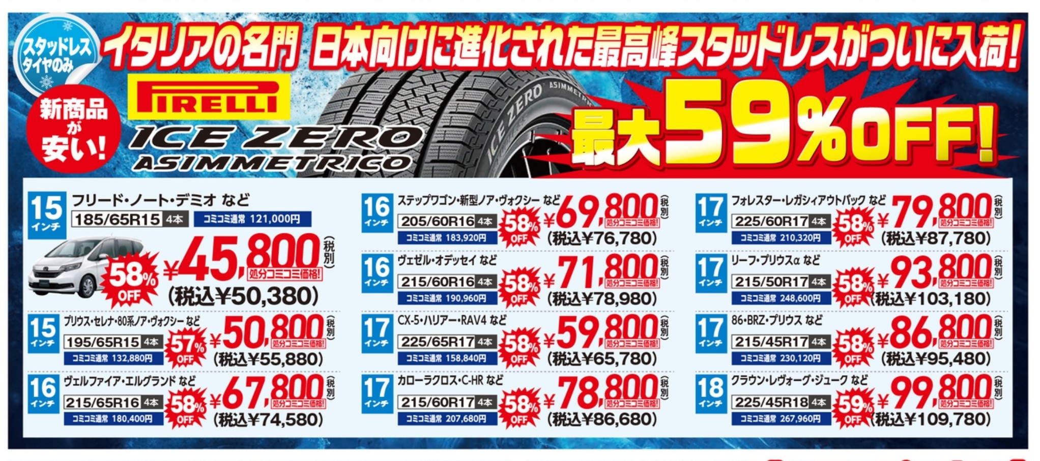 ピレリの新作スタッドレスが最大で59%OFF!