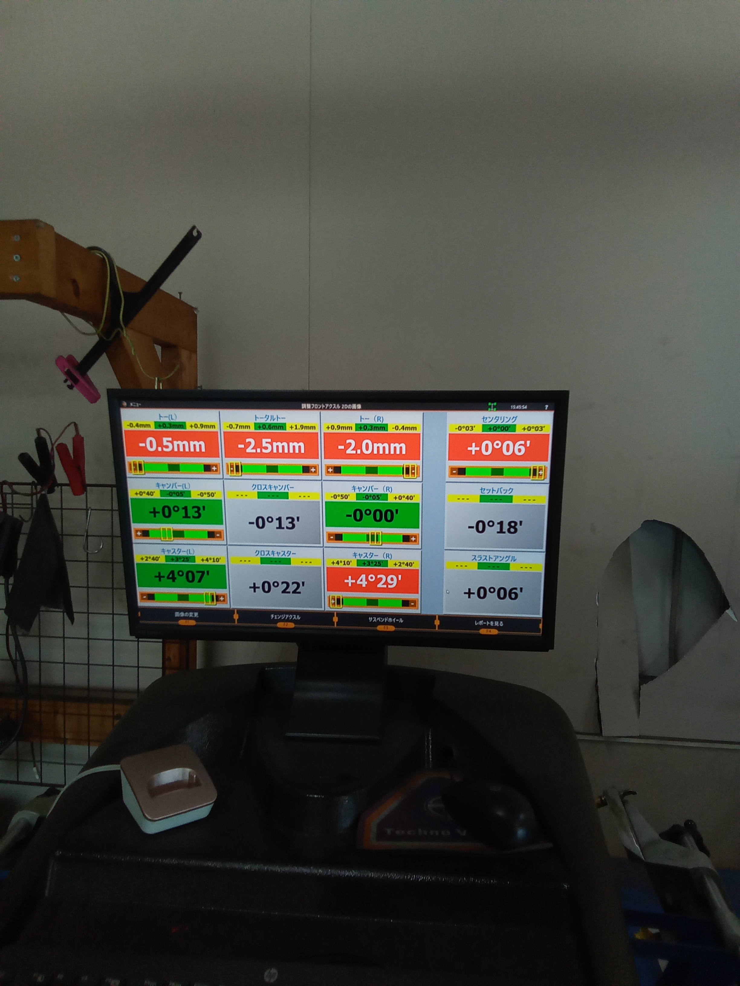 フロント右のトゥ角が2ミリアウトと左のトゥ角が0.5アウトミリもズレていました( ゚Д゚)