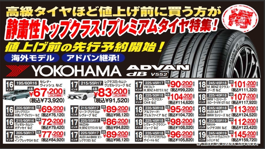 値上げ前だからこそプレミアムタイヤがお買い得となっております!