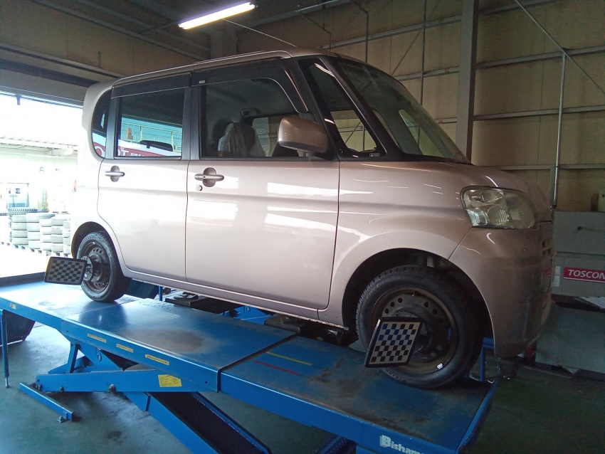 先日、ダイハツ タントのアライメント調整を施工致しました!