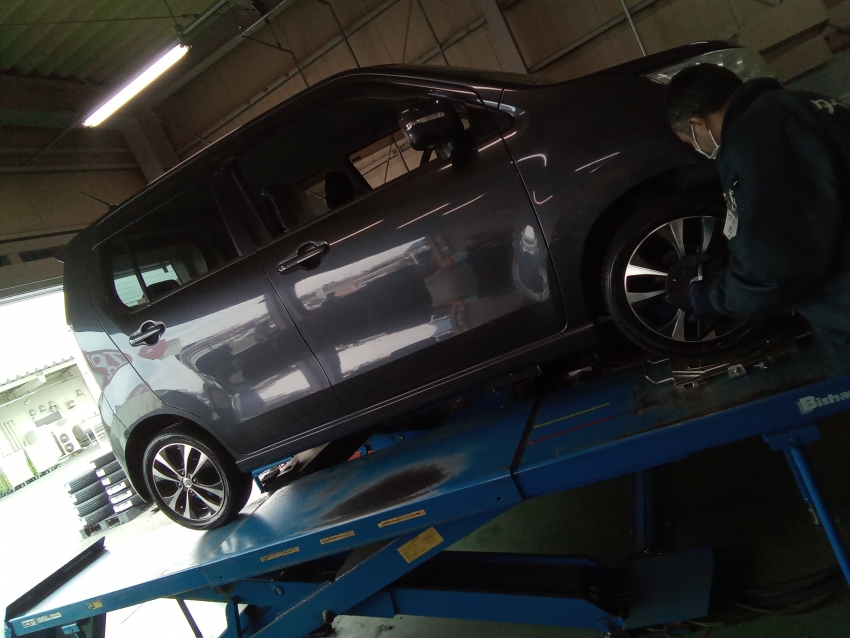 経年劣化により足回りの原因でホイールアライメントがズレてありましたので、