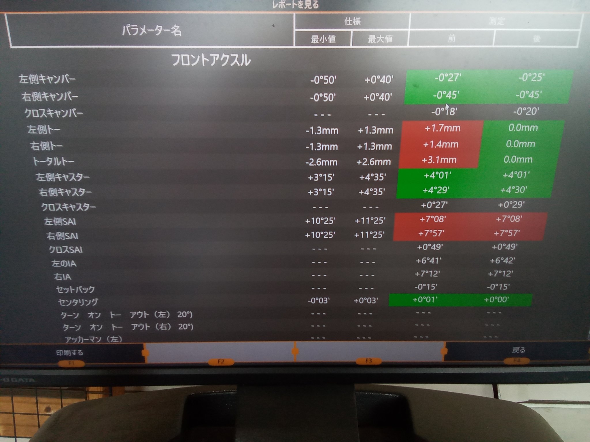 フロント及びリアのトーにズレありました!こ、これは・・・(; ・`д・´)