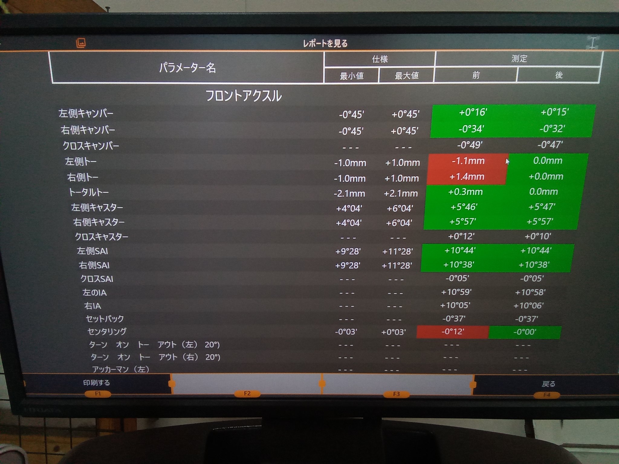 フロント及びリアのトーにズレありました!こ、これは・・・(; ・`д・´)
