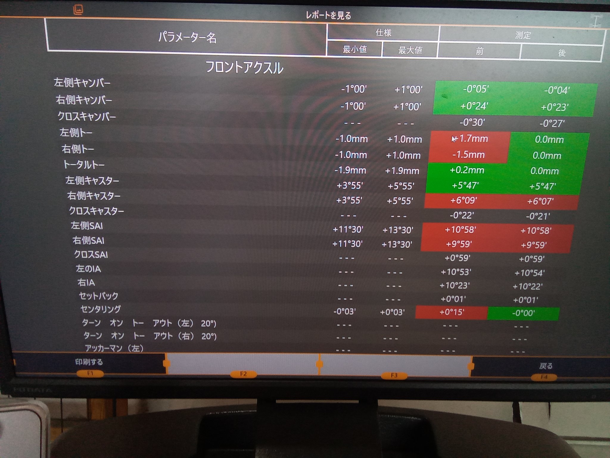 フロント及びリアのトーにズレありました!こ、これは・・・(; ・`д・´)