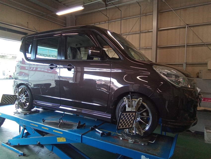 先日、スズキ ソリオのアライメント調整を施工致しました!