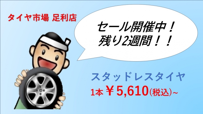 足利・太田・桐生・邑楽周辺でタイヤ交換を検討中のお客様必見!!今なら工賃無料!