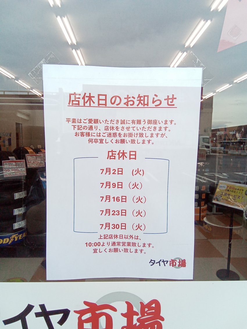 7月の定休日のお知らせです。