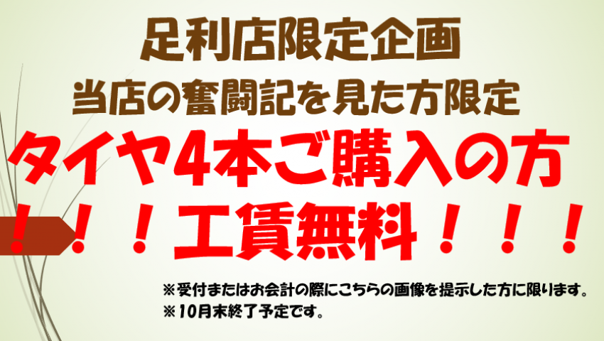 10月31日までに冬タイヤ4本ご購入の方限定で工賃無料!!