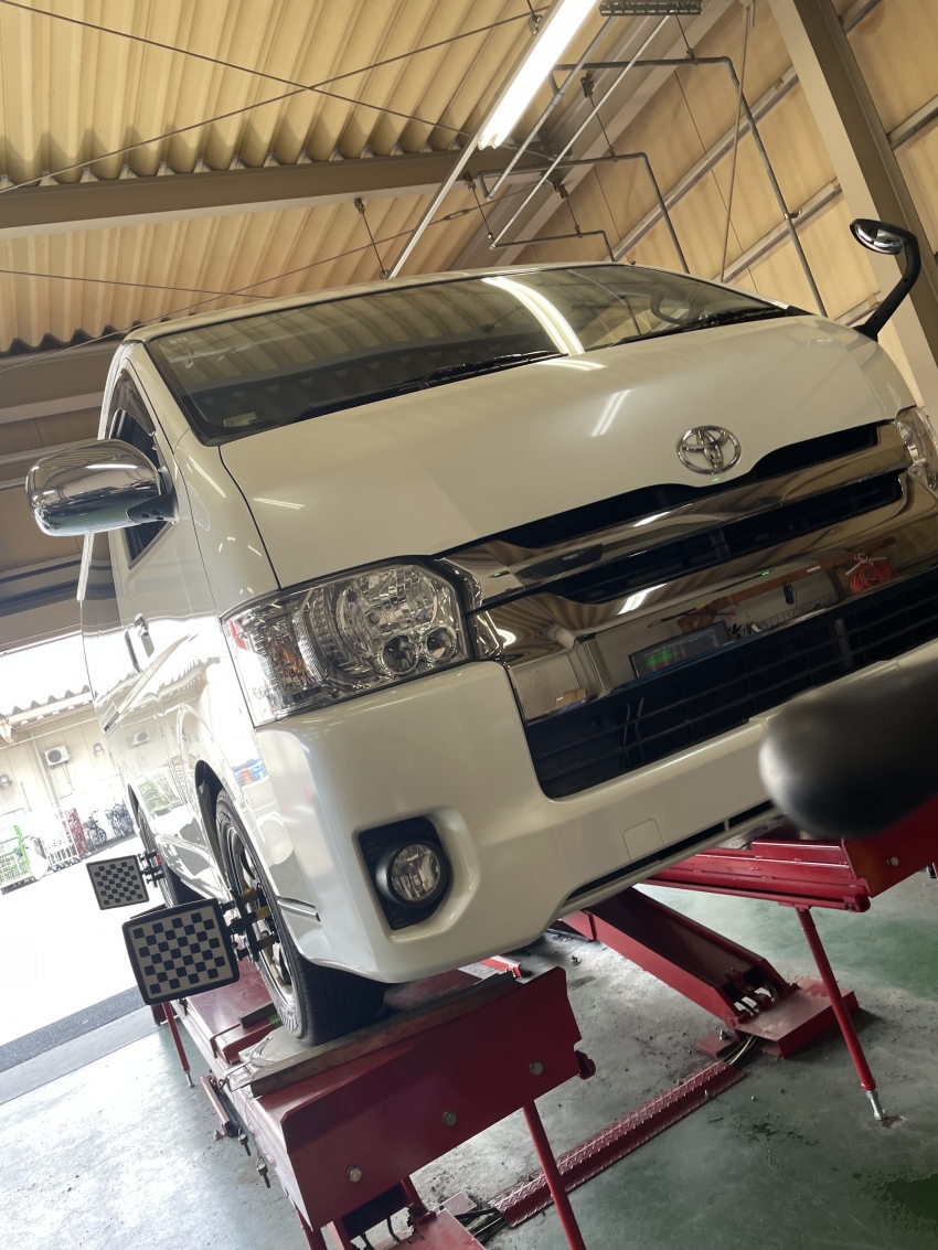 先日トヨタ・ハイエースワイドのアライメント調整承りました!