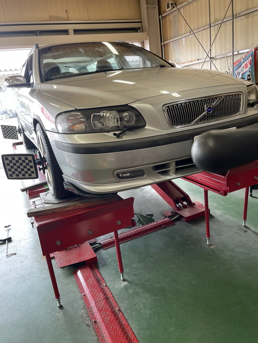 先日ボルボV70のお持ち込みの組み換えとアライメント調整承りました!