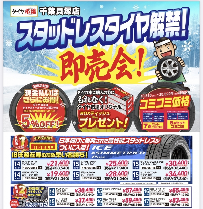 スタッドレスタイヤ解禁!! 即売会!!