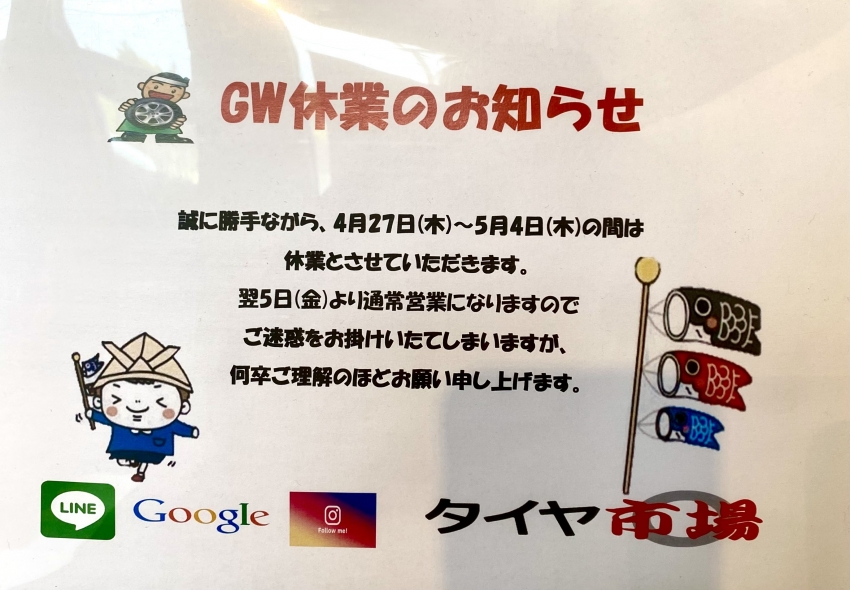 GWは店休となります。