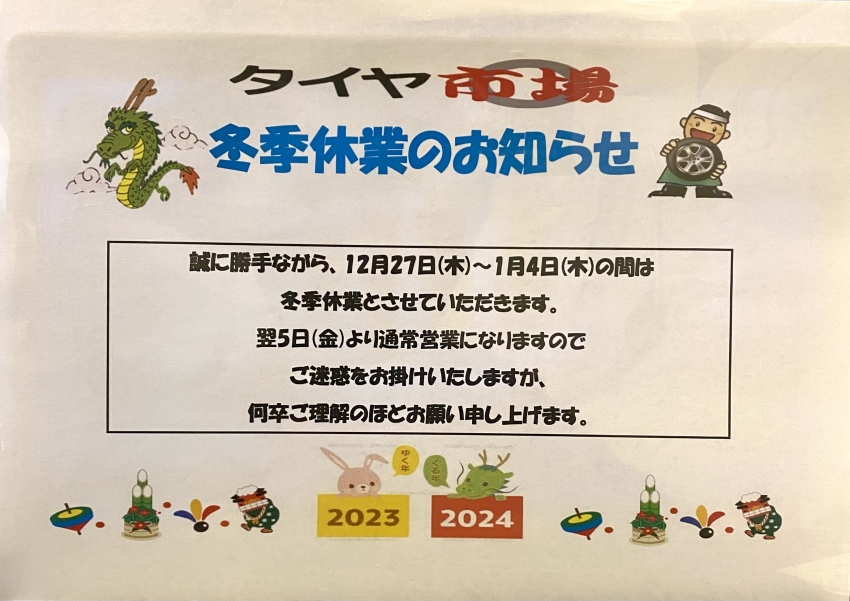 冬季休業のご案内です!!