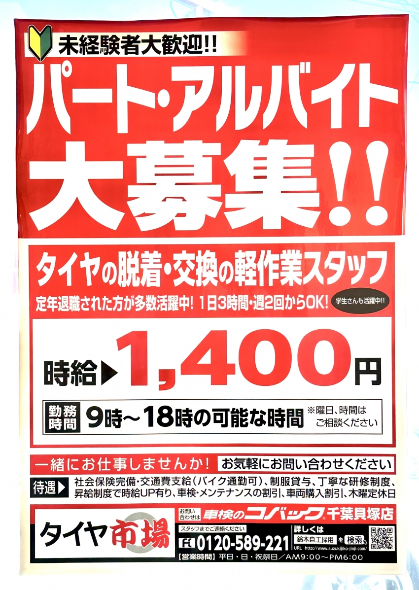 スタッフ大募集!!タイヤ市場千葉貝塚店!
