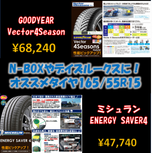 今回はデイズルークス、N-BOXなどに装着可能なサイズ165/55R15のオス...