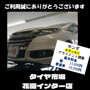 タイヤ市場伊勢崎宮子店でございます。オデッセイのタイヤ交換と同時にアライメン...