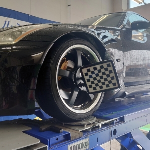 矢野さん、フェアレディZのアライメント調整奮闘中!!