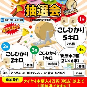 只今、タイヤ市場でガラポン抽選会開催中です!今日は朝から2等も出ました!...