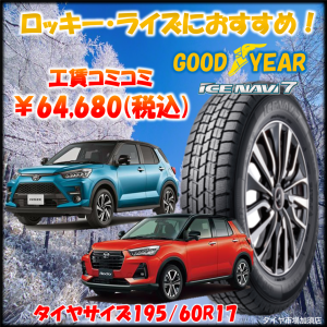 ロッキーライズにおすすめスタッドレス!国産でお買い求め安い価格!グッドイヤー【アイスナビ7】