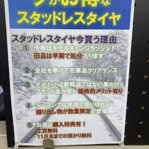 スタッドレスタイヤ買うなら今がベストなタイミングです\(^o^)/