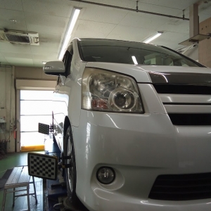 トヨタノアでアライメント調整入庫です!ミニバンなので、やはり片減りが気にな...
