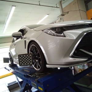 トヨタカローラスポーツでアライメント調整入庫しました!足回りは車高調が付...
