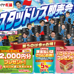 ただ今、スタッドレス即売会のチラシ期間中です!!!なんと上記の3大特典があ...