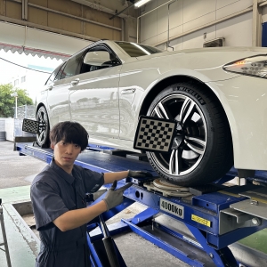 こんにちは!本日ご予約を頂いていましたお客様のBMW5シリーズのアライメント調...