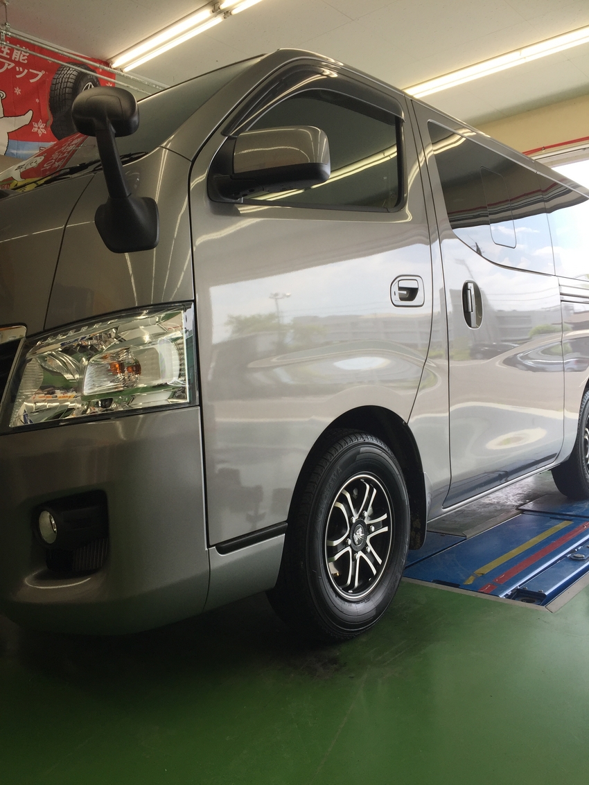 さて、今回はNV350ですが、純正が鉄ホイ-ルな為アルミに交換したいとご用命頂きました。