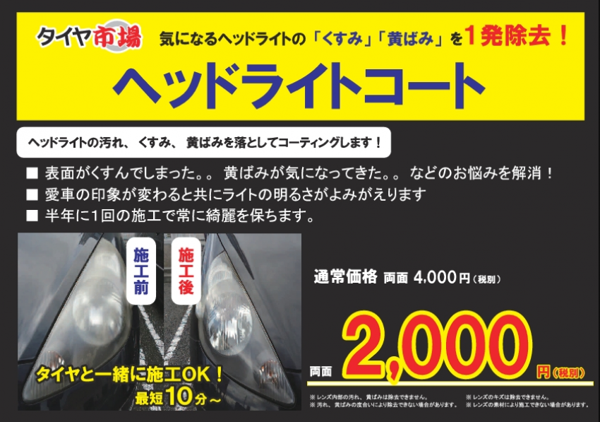 ヘッドライトクリアコーティングを