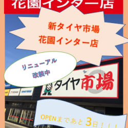 【タイヤ市場 花園インター店 臨時休業のお知らせ】