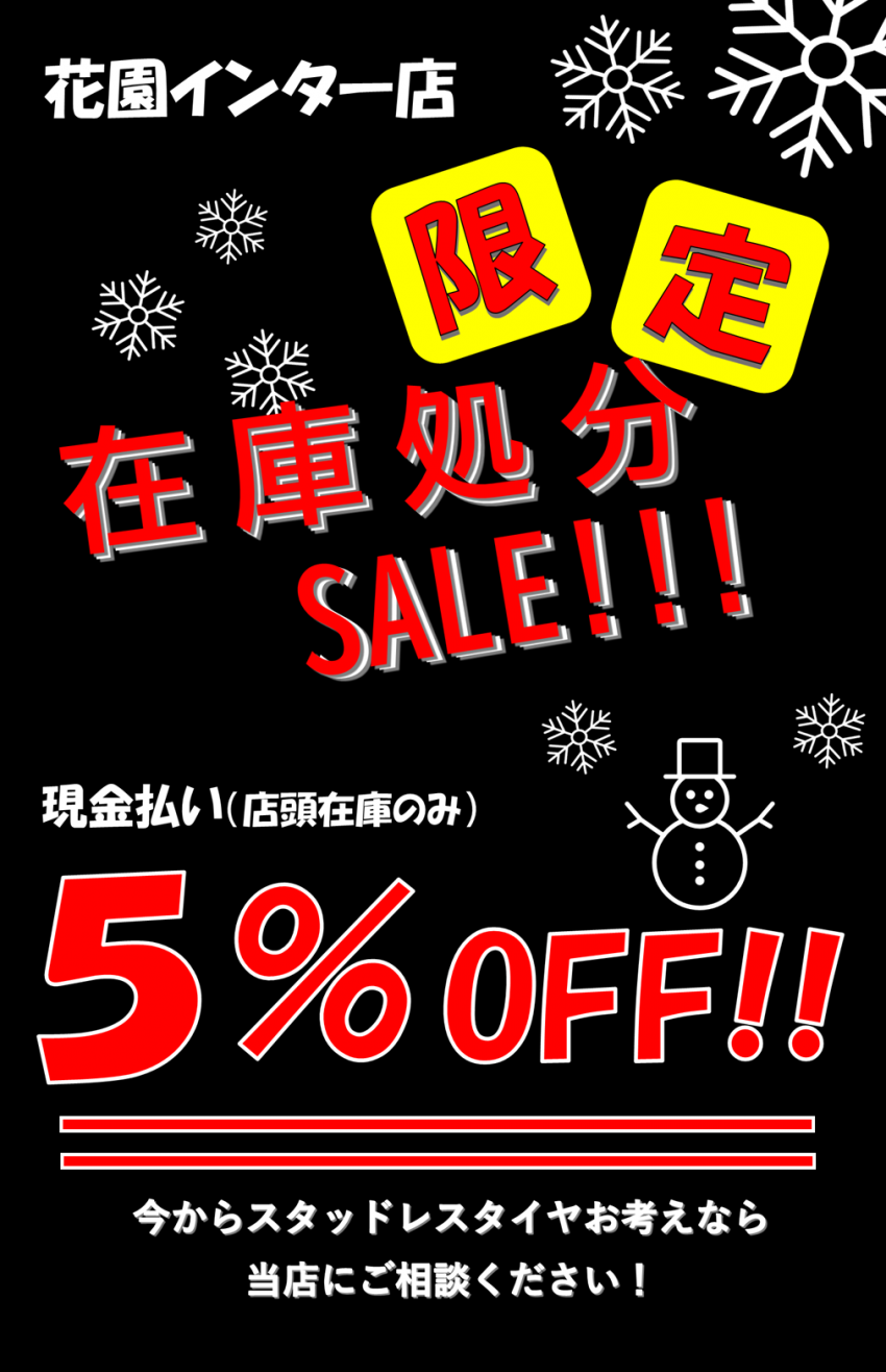 スタッドレスタイヤ在庫処分セール開催!