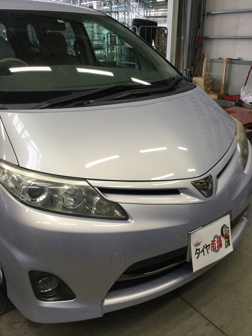 トヨタ エスティマです。実は交換前のタイヤが普通車用のタイヤが付いていて、片減りが激しかったのです。