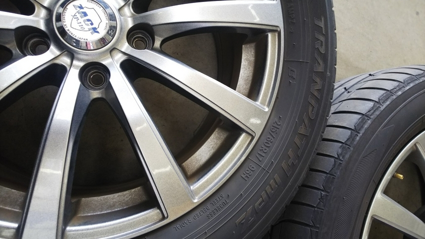 但し、タイヤサイズはエスティマ215/60R17とエクストレイルは225/65R17と違うのでタイヤは新しい物を購入して組込みをさせて取り付けさせて頂きました。