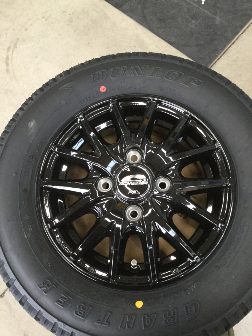さて本日の作業はホンダの軽トラック アクティのタイヤ+アルミホイールセットの交換です。