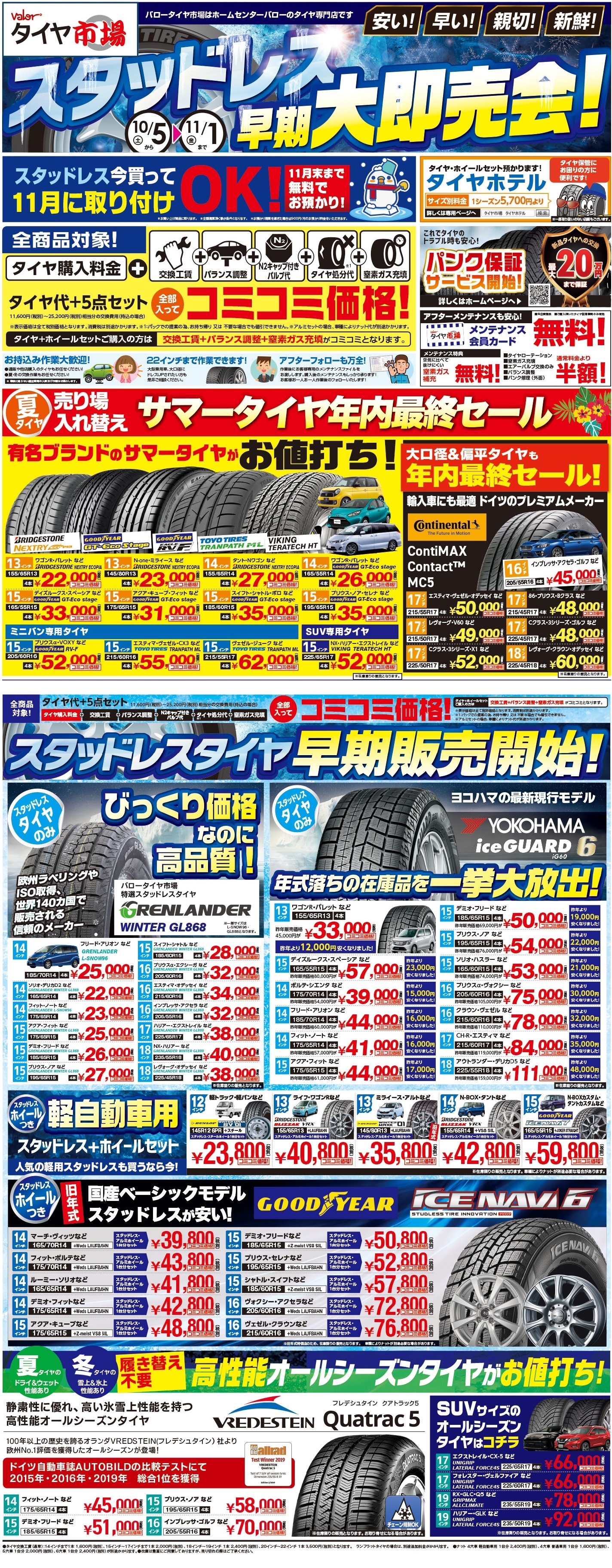 スタッドレスタイヤ早期販売も大好評のタイヤ市場までお気軽にご来店くださいませ!
