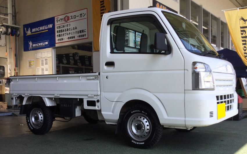 見た目もアクティブに軽トラ用マッドタイヤでホワイトレターのタイヤはかなり珍しいと思います。