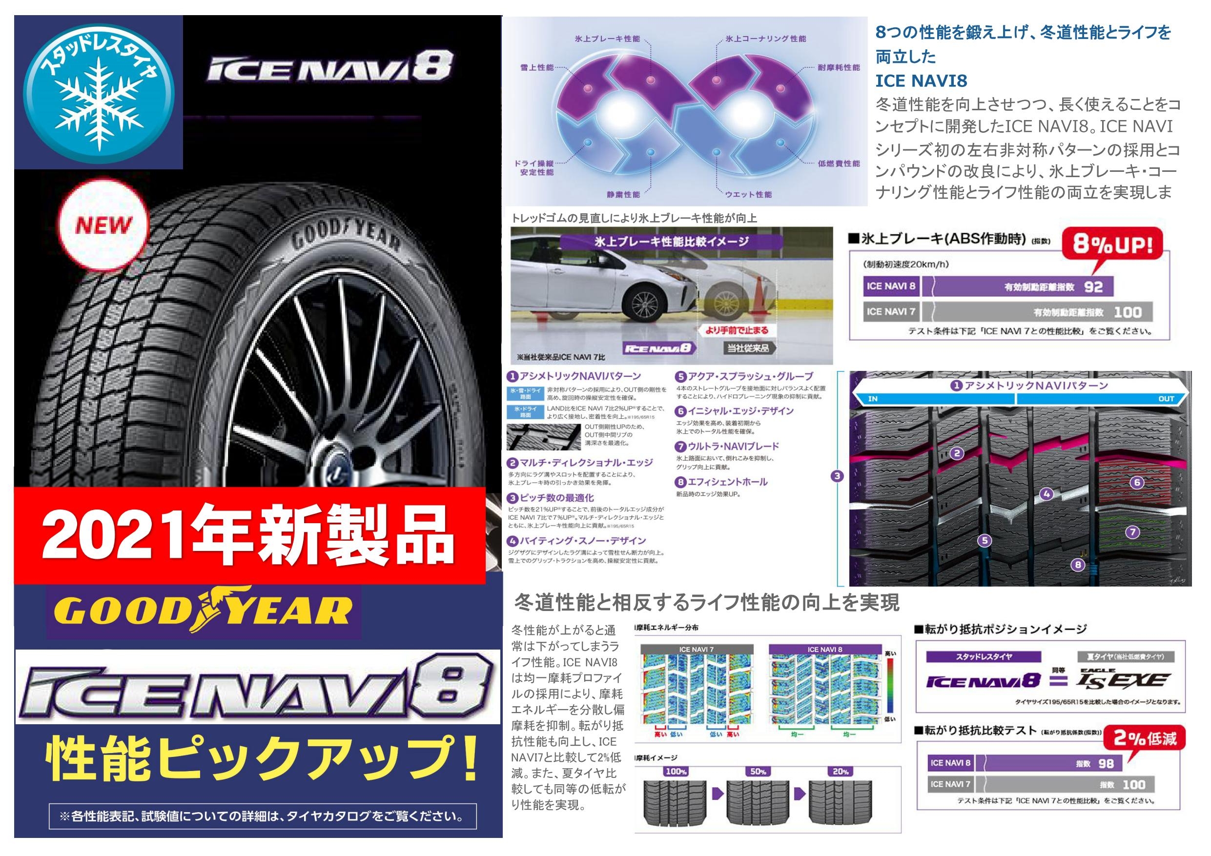 グッドイヤー ICE NAVI8 グッドイヤー史上最高のプレミアムスタッドレスタイヤ⇒NAVI8