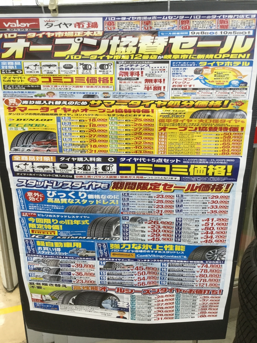 さて今回バロータイヤ市場の12号店がオープン致しました!それに合わせて、オープン協賛セールといたしまして、タイヤが非常にお値打ちになっております。
