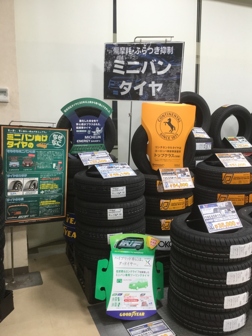 本日はミニバンタイヤを大量入荷いたしましたので売場コーナーの写真と合わせて紹介させて頂きます