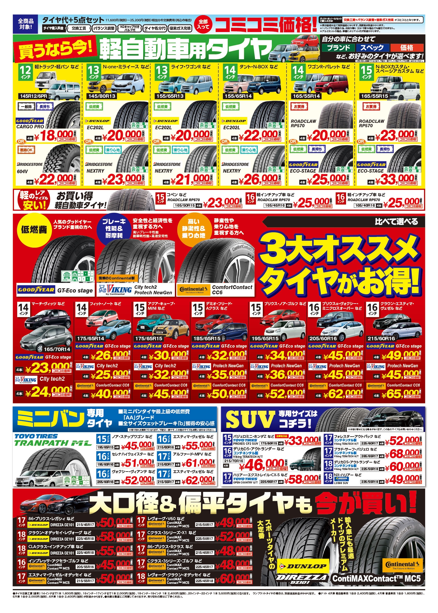 ミニバンや、SUV専用タイヤに、大口径・扁平タイヤまで幅広くご用意してお待ちしております!