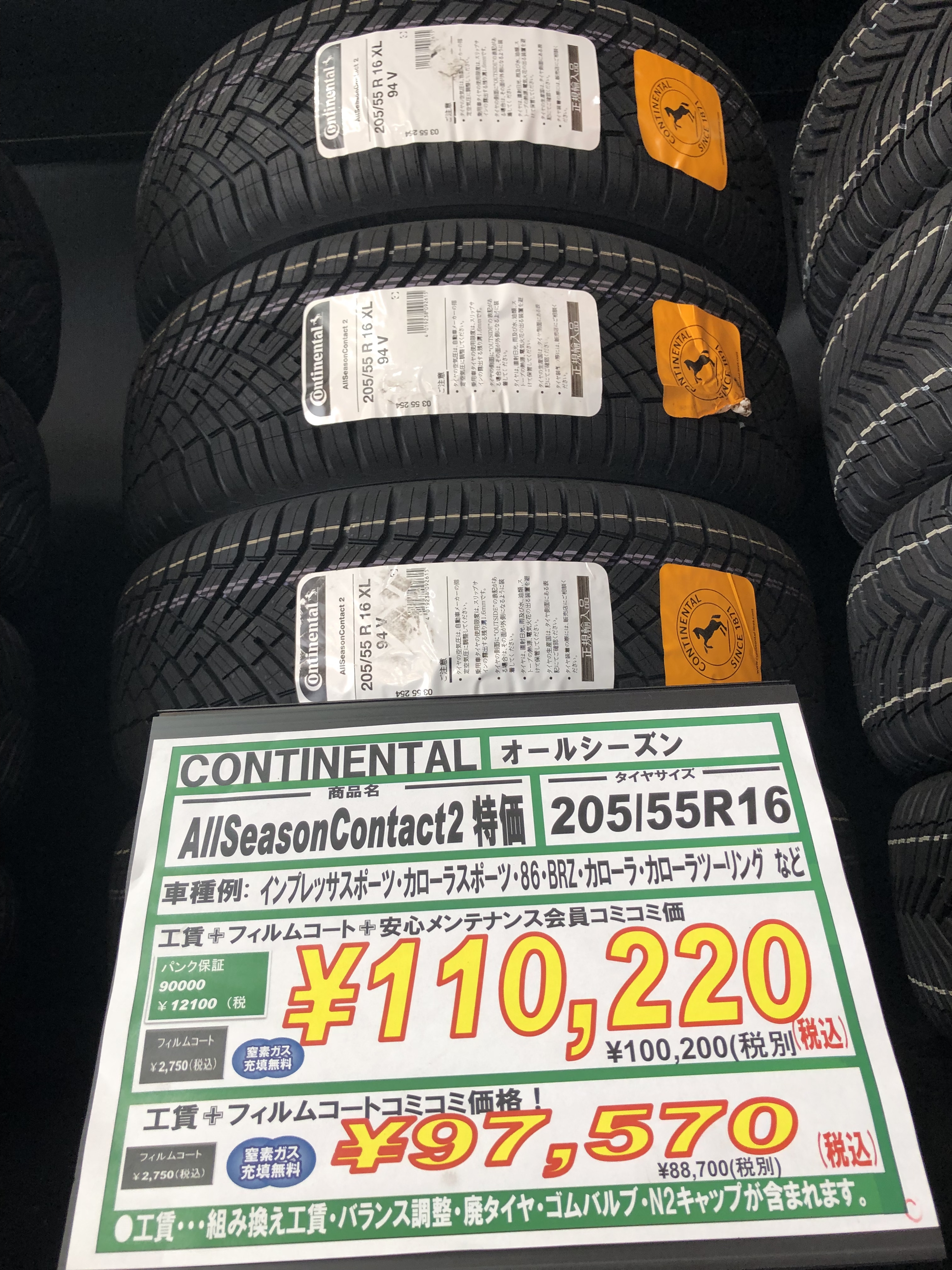 タイヤ市場が自信をもってお勧めするコンチネンタルAllSeasonContact2(オールシーズン コンタクト ツー)お取り付けさせて頂きました(`・ω・´)