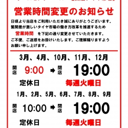 AM9:00~PM7:00 (ピット作業受付:AM9:00~PM6:00)1月/2月/5月/6月/7月/8月/9月