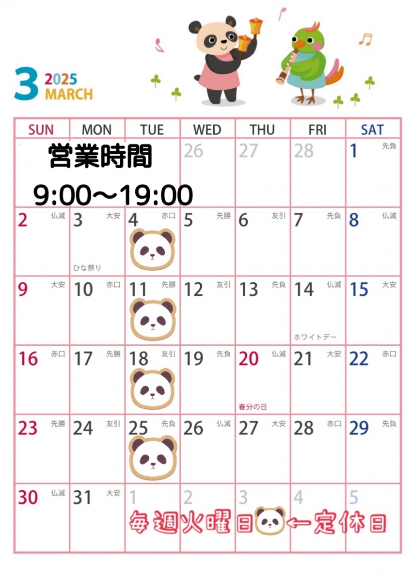 ☆3月の営業時間☆