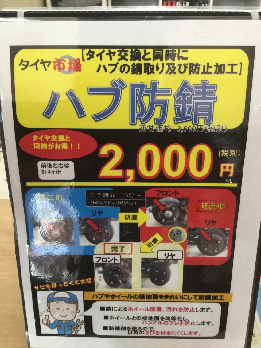 今回スタッドレスタイヤの交換と一緒に、ハブ防錆もさせて頂きました!