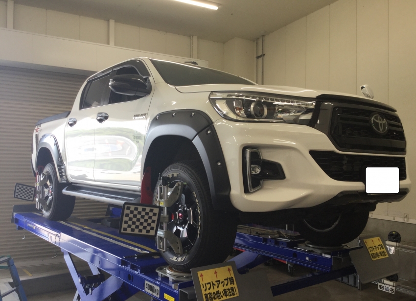今日は午前中は トヨタ ハイラックス のアライメント調整です!ありがとうございます!